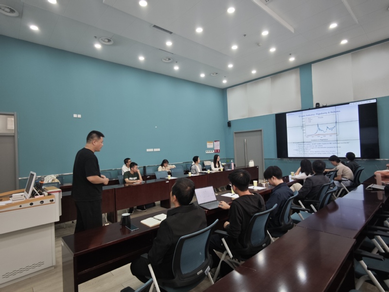 与会教师和学生与汪老师进行了充分的交流讨论,就比特币投资回报与大宗商品的关联、市场价格波动特征及交易策略、相关模型的优化等问题展开交流。大家认为该论文的研究方法可以从比特币进一步推广到其他新资产,具有较强的应用性。与会师生自由交流观点,研讨气氛轻松愉快,该过程启发了师生们对比特币等新型投资工具对投资者具体影响的深度思考。