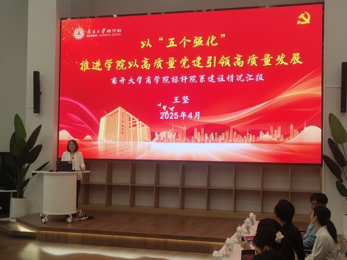接着,商学院党委负责人围绕“以‘五个强化’推进学院以高质量党建引领高质量发展”主题,介绍学院标杆院系建设的经验和做法。