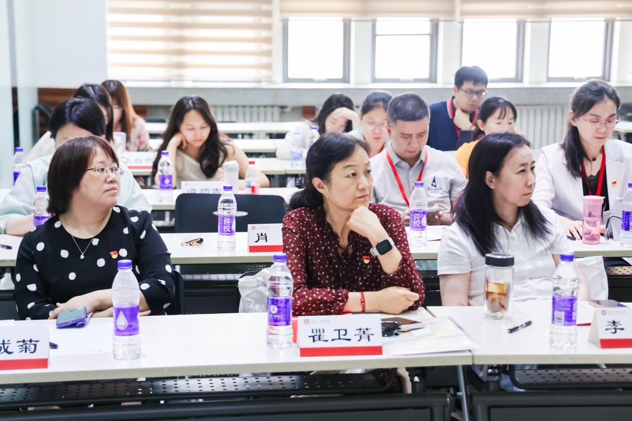 中国人民大学商学院党委书记旋天颖从“思想引领、组织统筹、队伍建设”三方面,介绍了学院推进党建与业务深度融合的经验做法,强调要以思政贯通教育全过程,提升育人实效。