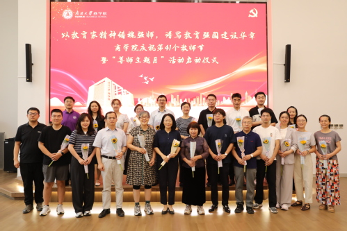 (通讯员:姜忆楠 摄影:杨为中)为大力弘扬教育家精神,展现新时代商学院教师队伍“躬耕教坛、潜心育人”的精神风貌,营造尊师重教浓厚校园氛围,商学院9月10日举办庆祝第41个教师节暨“尊师主题月”活动启动仪式。院班子、优秀教师代表、荣休教工、新教工代表等近30人参加。院教代会主席郝臣主持活动。