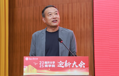 随后,南开大学商学院院长白长虹上台致辞,他代表学院对2025级新生的到来表示热烈欢迎,分享了希望大家以青年的创造力践行“商以富国”的使命,在创造中追寻幸福的意义。在南开商科,尤其注重科学与艺术相融合的创造力培养,强调跨学科的知识复合与自主建构,倡导实践导向与团队协作,更呼唤面向未来的责任与担当。