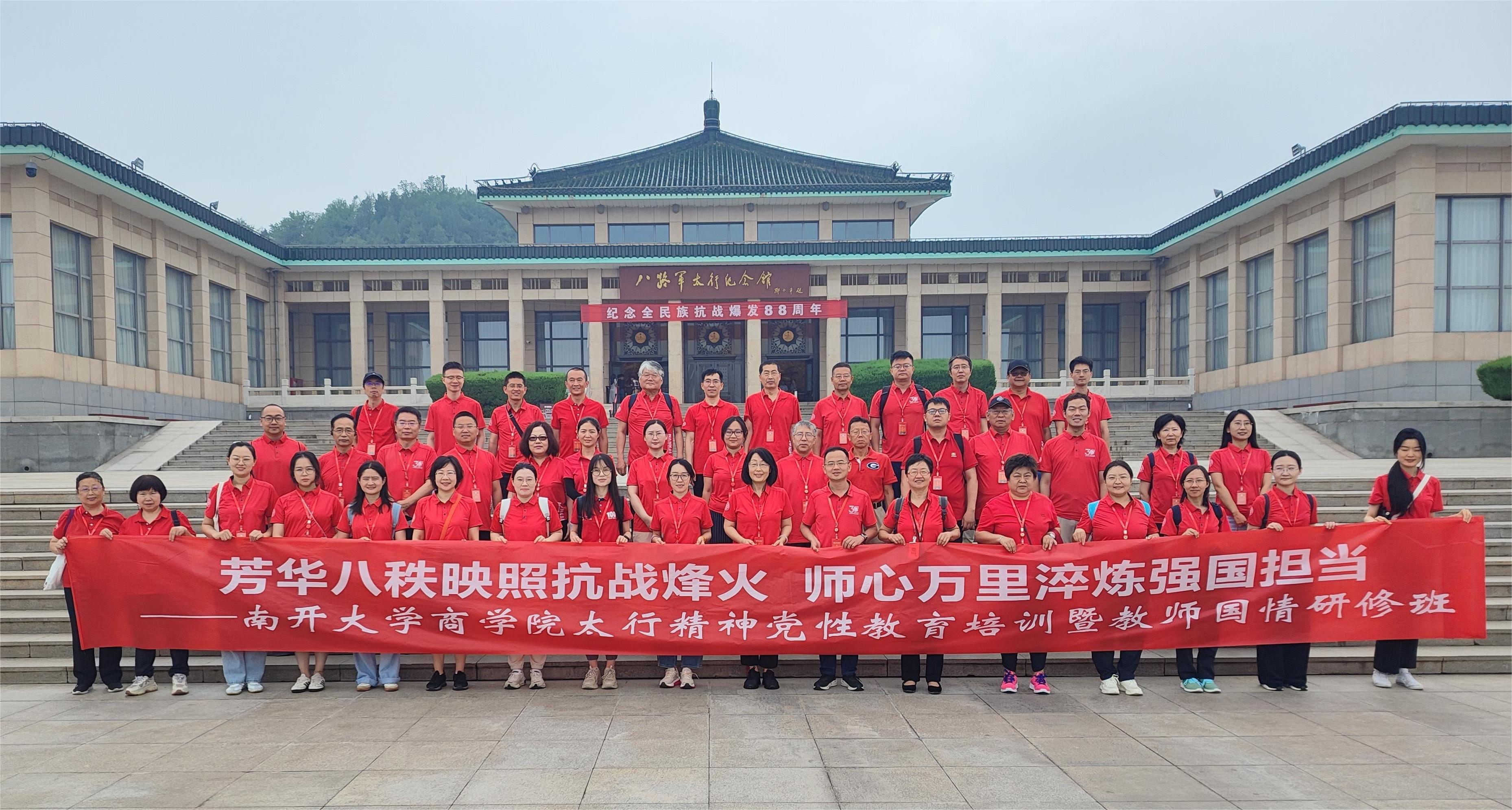(通讯员:姜忆楠 高鑫)在全民族抗战爆发88周年、中国人民抗日战争暨世界反法西斯战争胜利80周年之际,在校党委教师工作部的指导与支持下,7月7日至11日,南开大学商学院组织50余名教职工前往山西,开展“芳华八秩映照抗战烽火 师心万里淬炼强国担当”太行精神党性教育培训暨国情研修班。本次活动也是商学院在“十四五”规划收官、“十五五”规划谋篇布局之年,学习贯彻党的二十大和二十届三中全会精神,扎实推进深入贯彻中央八项规定精神学习教育,提升教工对党情、国情、社情的认识的最新举措。