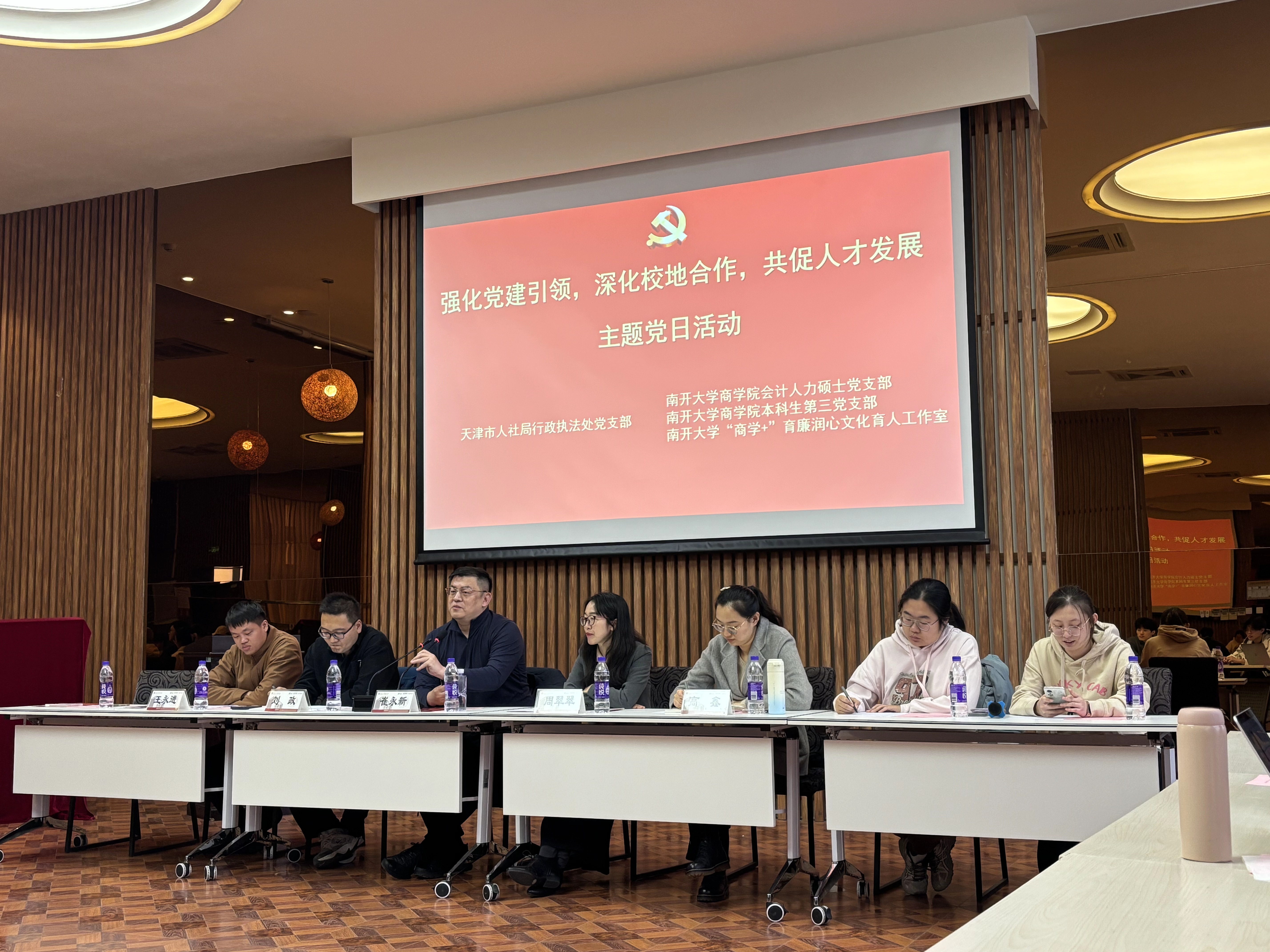 (通讯员 李鑫蒙 高鑫)11月5日,商学院与天津市人社局行政执法处联合举办“强化党建引领,深化校地合作,共促人才发展”主题党日共建座谈会。双方围绕高校毕业生就业指导、劳动权益保障、就业形势分析等内容展开深入交流,旨在以党建为纽带,推动校地资源互补、优势共享,共同服务新时代高质量人才发展。