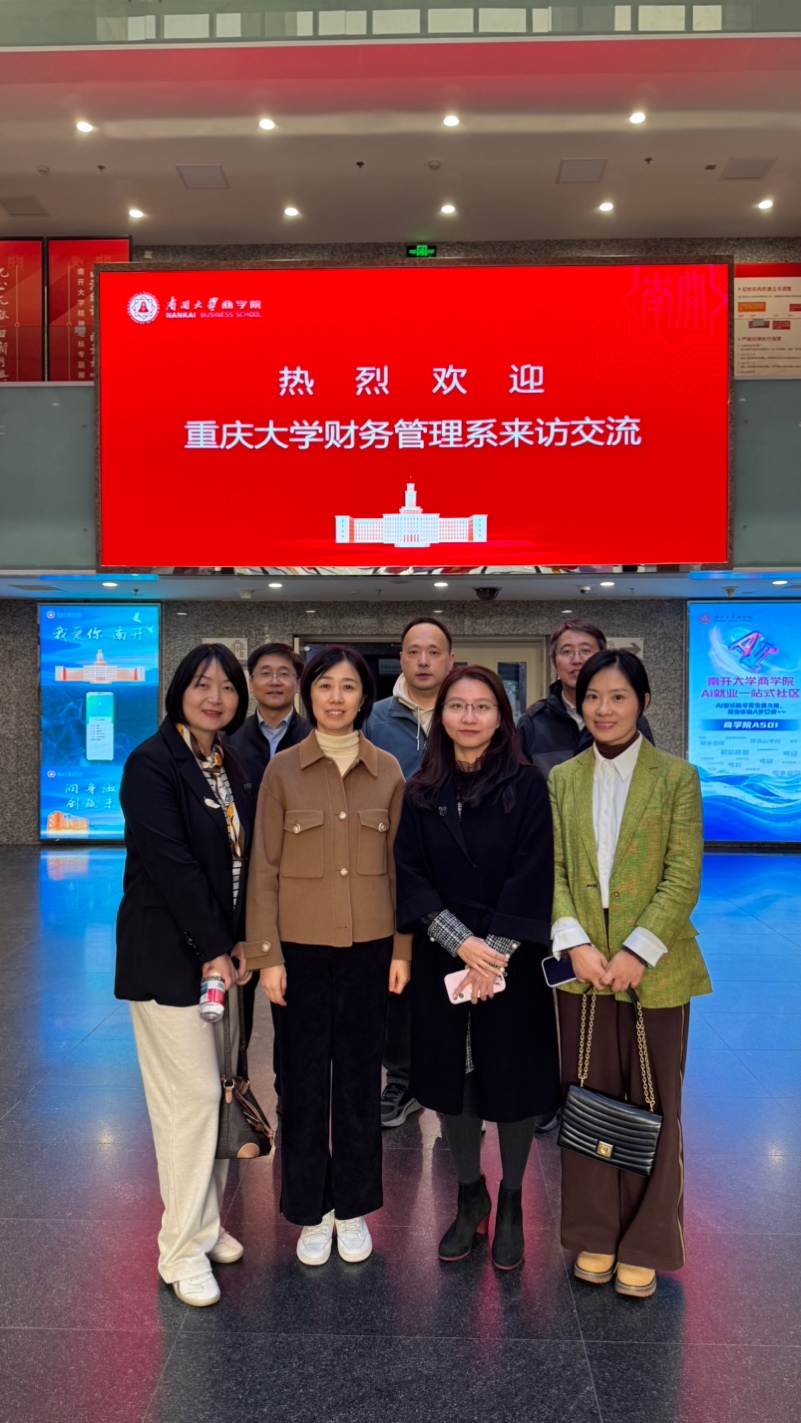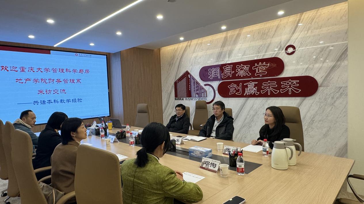 2025 年 10 月 23 日下午,重庆大学管理科学与房地产学院财务管理系系主任侯文华率教师周放、钱艳、邓恂一行到访南开大学商学院。南开大学商学院财务管理系副系主任张涵、支部书记张苏、教代会主席郝臣热情接待来访客人。