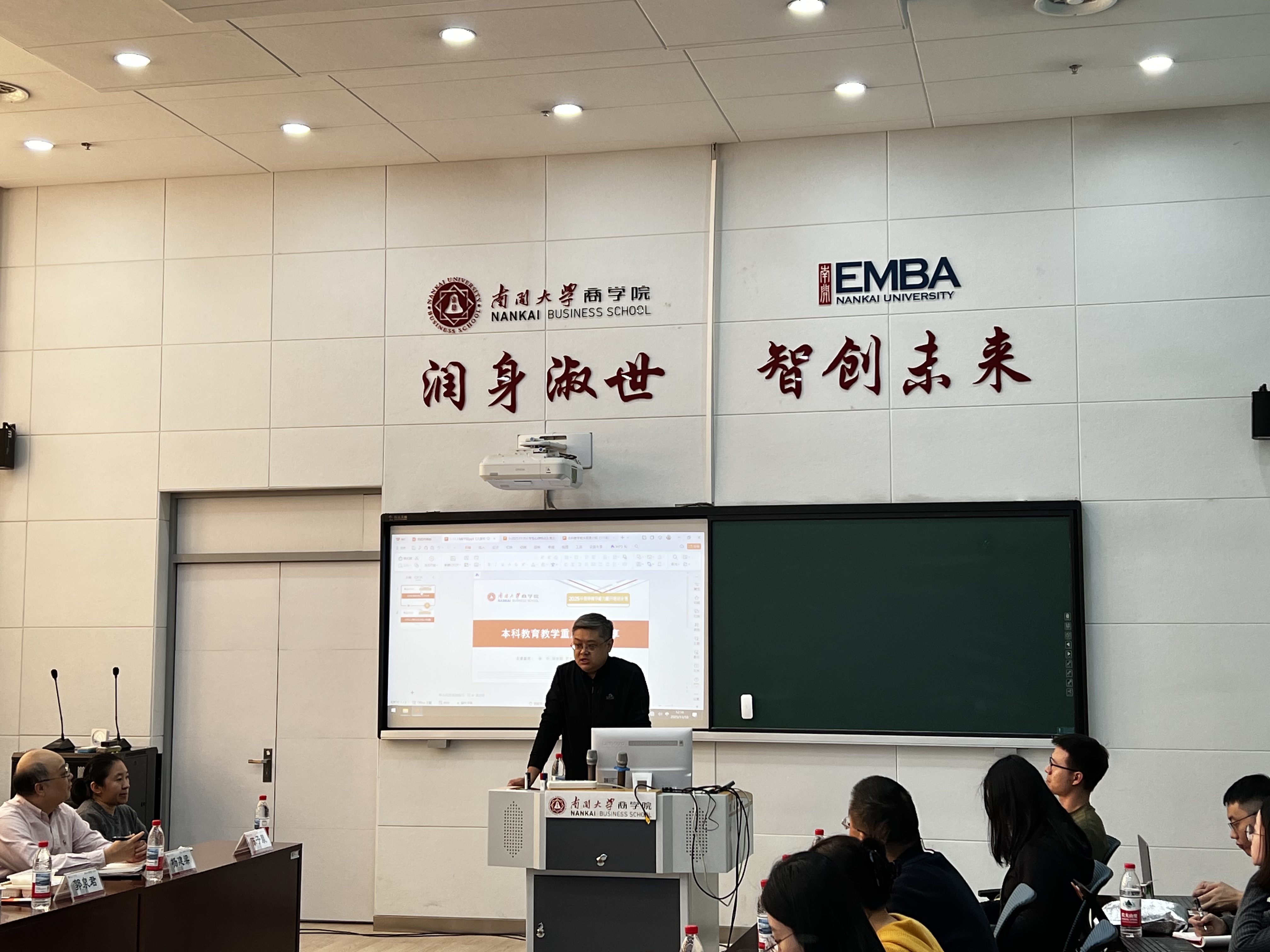 近日,2025年商学院教师教学能力提升培训计划专题讲座第二讲在商学院A501-2会议室成功举办。教务部常务副部长李中、教学质量监督与评价中心胡志辉、教材建设办公室郭泉君、学生培养与教研中心杨建梁、张晶晶和心理健康教育中心陈子晨受邀做讲座,商学院各系所、办公室教职工参加。商学院党委书记王坚出席并讲话。