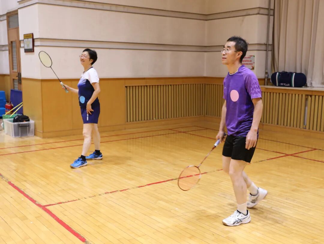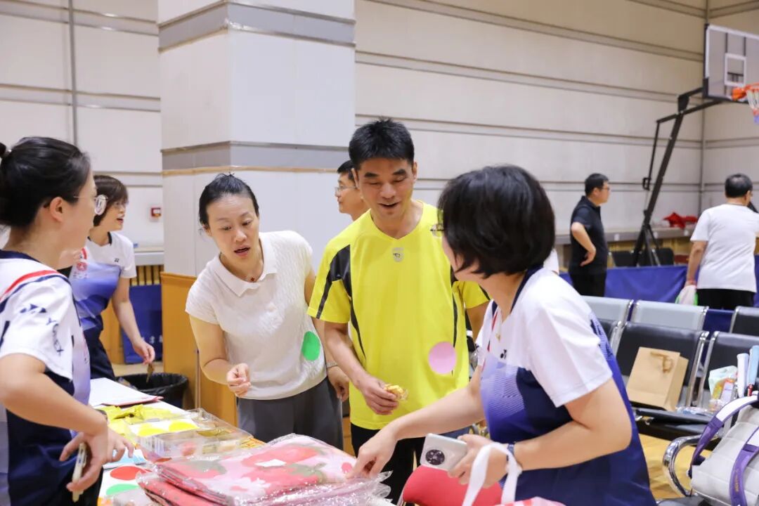 活动现场,老师们身着运动装,精神饱满地投入到羽毛球联谊活动中。六个小组分别在三个场地进行双打交流,场上,教师们挥拍自如,配合默契,展现出蓬勃的活力;场下,新老教工亲切交流,笑语盈盈,气氛热烈融洽,展现了商学院教职工活力四射、团结友爱的精神风貌。