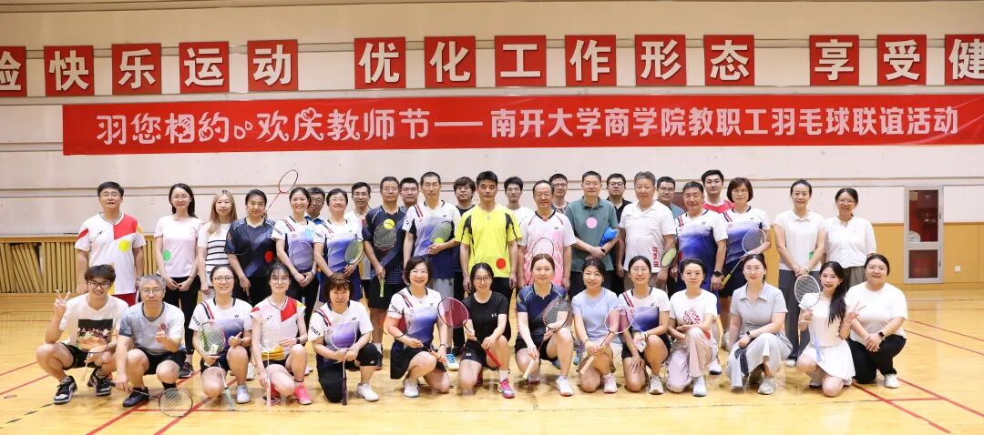 金秋九月,硕果盈枝,我们迎来了第41个教师节。为弘扬尊师重教的优良传统,丰富教职工的业余文化生活,增进各系所、部门之间的交流与情谊,2025年9月10日中午,南开大学商学院工会教代会在商学院多功能厅成功举办了“羽您相约 欢庆教师节”为主题的教职工羽毛球联谊活动,50余位老师参加活动。