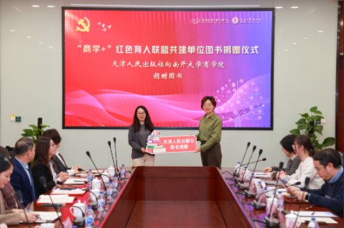 天津人民出版社编辑第二支部书记、总编办主任王小凤代表单位,向商学院捐赠图书百册,正是“商学+”红色育人联盟“共建共育、资源共享”理念的生动实践,形成了物质支持与精神滋养并重的育人生态。
