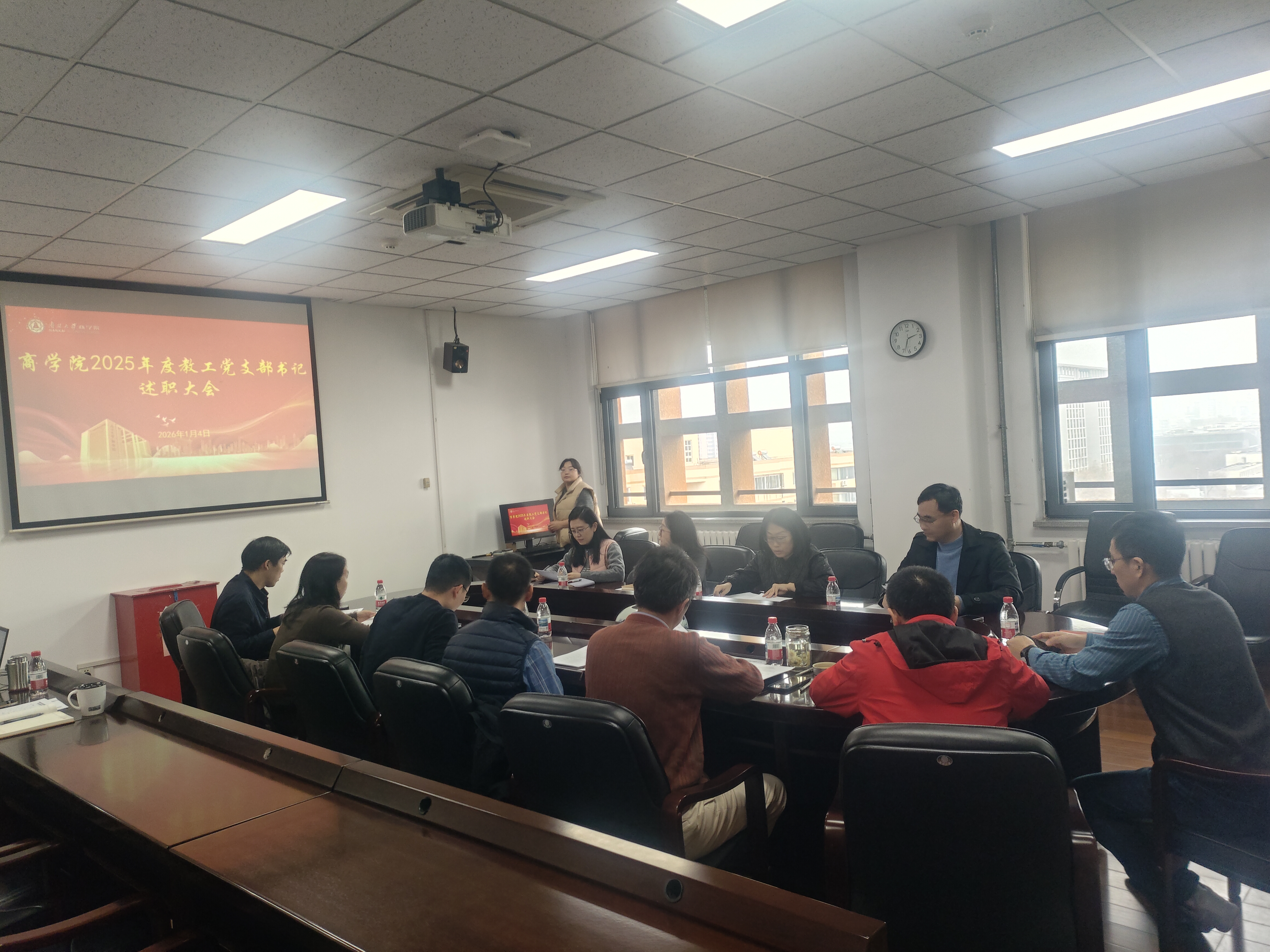 (通讯员:姜忆楠 王媛媛)2026年1月4日下午,商学院党委于815会议室召开教工党支部书记例会,全面总结2025年党建工作成效,系统部署2026年重点任务。党委书记王坚主持会议,院班子成员及全体教工党支部书记参会。