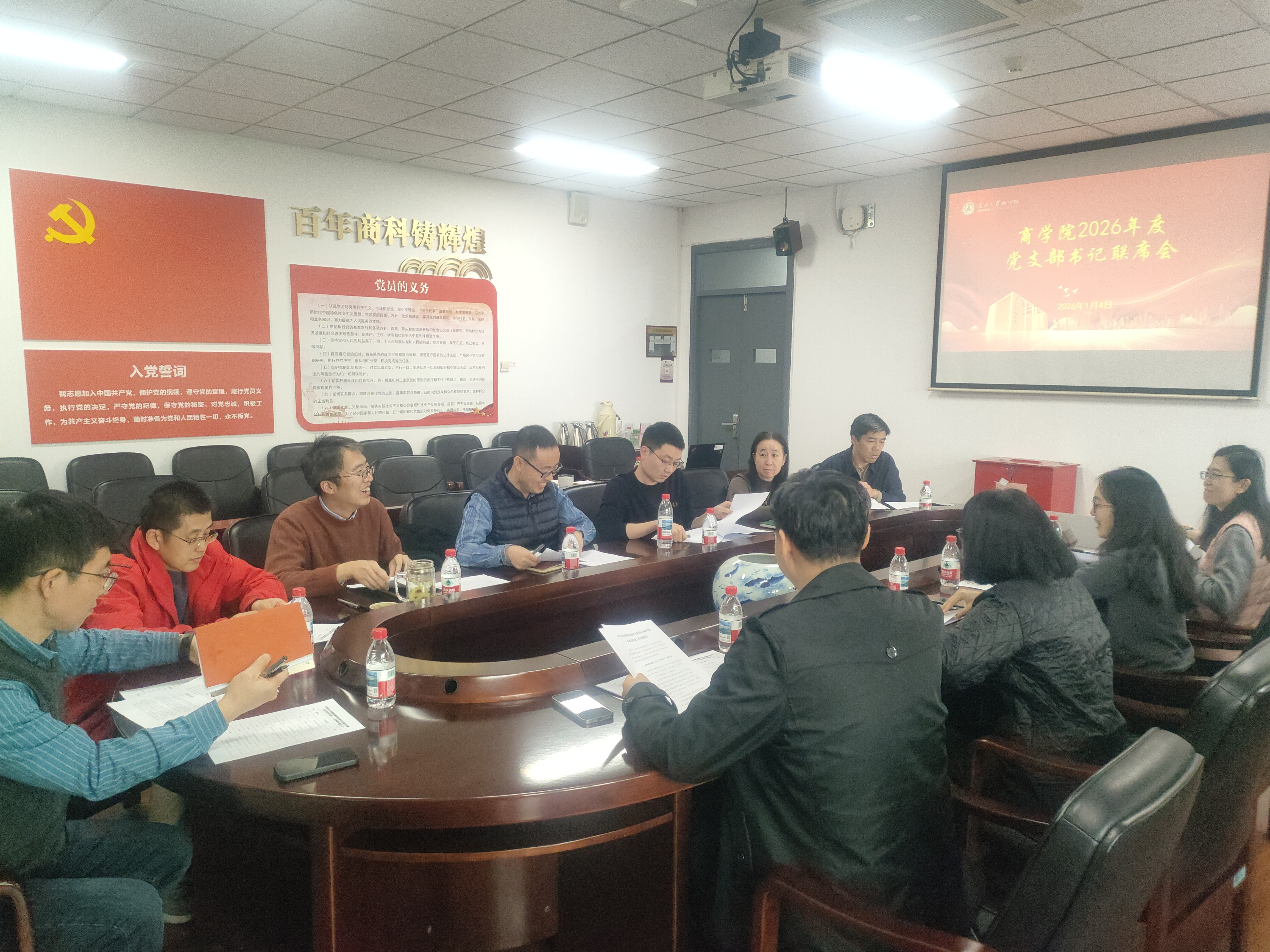 会议号召,各党支部和全体党员干部要在2026年踔厉奋发、骐骥驰骋,进一步强化作用发挥、强化任务落实、强化沟通协调,为学院事业高质量发展注入更加强劲的“红色动能”。会上还就近期需重点推进的组织生活会、巡视整改、纪检与廉政建设、党建带团建、“商学+”红色育人联盟建设、保密教育等工作进行部署,为2026年党建工作开好局、起好步奠定基础。