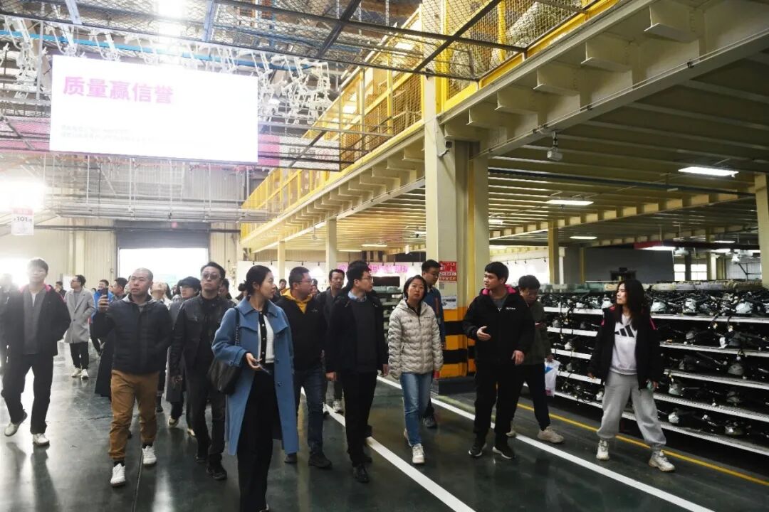 离开产品展示厅后,卢总继续带领大家参观了爱玛的生产车间,车间里十条总装生产线井然有序的运转着,随处可见的准时化生产管理看板实时显示着每条生产线正在流转的物料名称、产线节拍、目标达成率、下线数量等关键生产数据。从零散部件到完整电动车产品出库,整个生产流程高效连贯,师生们无不为爱玛高度智能化与精细化的生产运作管理模式所惊叹。