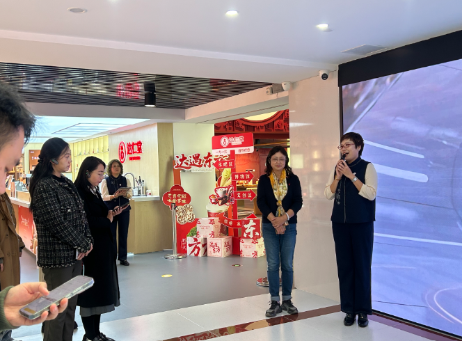 在参观体验环节,师生们来到博物馆一楼的药品展示区与香囊手作区,近距离感受中药材的辨识技艺与制药工艺的独特之处。中医药博物馆工作人员向大家介绍了达仁堂传统药品的制作流程与现代化生产体系,并邀请同学们参与山楂丸的制作体验,了解药食同源理念在日常养生中的应用。随后,大家关注到调配香料、制作香囊等创意理念,在浓郁的药香与文化氛围中体会传统医药的生活美学。通过实践学习与活动体验,学生们不仅深化对中医药文化的理解,也领略到品牌如何将文化传承与消费需求相结合,打造更具体验感与价值感的服务营销模式