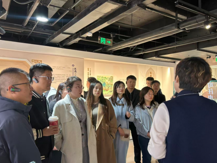 在参观学习过程中,师生们认真聆听讲解,大家围绕中医药文化的现代传播、传统与创新的结合等话题,展开了深入的讨论。课程负责人许晖教授引导同学们从服务营销角度分析中医药的服务创新等,提出许多切实可行的建议。李莉馆长结合企业发展历程,介绍了达仁堂在中医药文化传承、产业升级与品牌推广方面的探索实践,并分享企业在数字化赋能、科研创新和社会责任等领域的最新成果。通过交流,同学们进一步认识到老字号品牌在新时代背景下如何通过文化价值转化实现市场竞争力的持续提升,也对传统产业如何在守正中创新、在创新中传承有了更深层次的理解。现场交流氛围十分活跃,展现了理论与实践的有效结合。