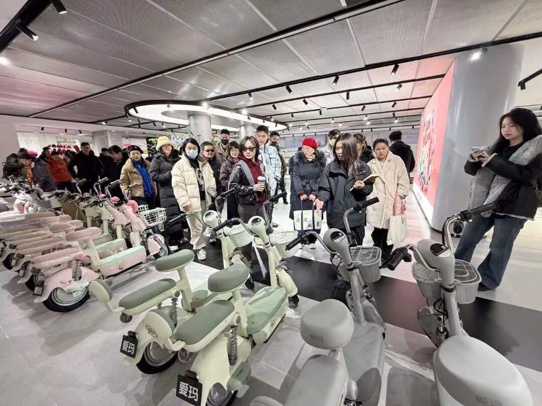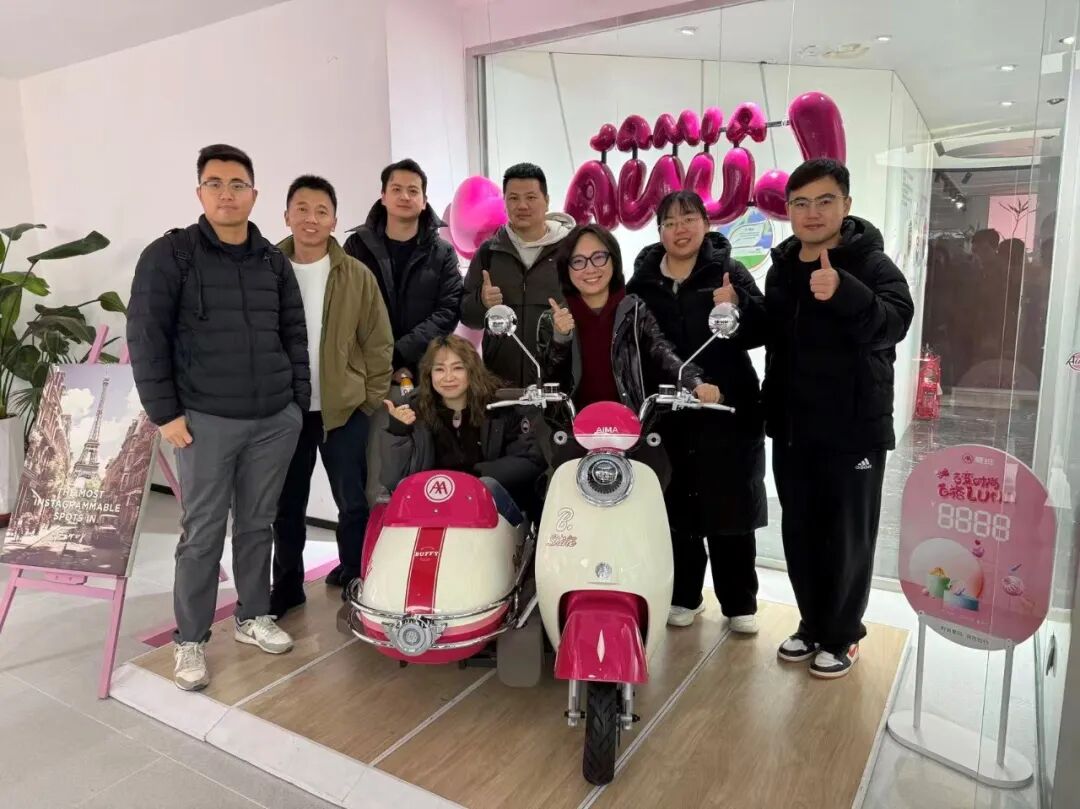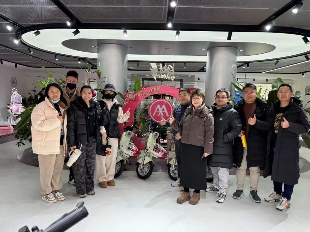 寒风料峭,却丝毫抵挡不住师生们探索求知的热忱。上午8时50分,满载师生的大巴车准时抵达爱玛厂区,下车后一抹醒目的爱玛标志性粉色映入眼帘——粉刷成粉色的职工公寓楼温馨亮眼,瞬间拉近了大家与企业的距离。爱玛首席信息官卢会北亲临现场,对南开师生的到访表示热烈欢迎。简短而诚挚的欢迎仪式后,卢总亲自带队,引领师生们前往核心区域——爱玛产品展示厅,开启此次学习探索之旅。