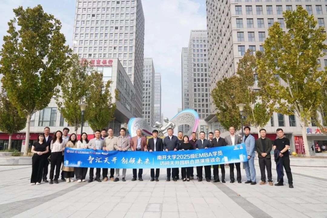 2025年10月15日,南开大学2025级EMBA学员、南开大学2025级EMBA功能党支部成员、MBA学员和富国书院学生代表到访天开园参加联合路演和座谈会活动。本次活动由南开大学商学院、天津天开发展集团有限公司、天津宏达科技创新产业发展有限公司、天津津投城市开发股份有限公司共同主办。活动围绕国家重大战略需求,聚焦战略性新兴产业和未来产业,以“沉浸式参访+精准路演+深度座谈”的形式,统筹校内资源、挖掘外部合作机会,为EMBA学员链接科创生态搭建立体平台。
