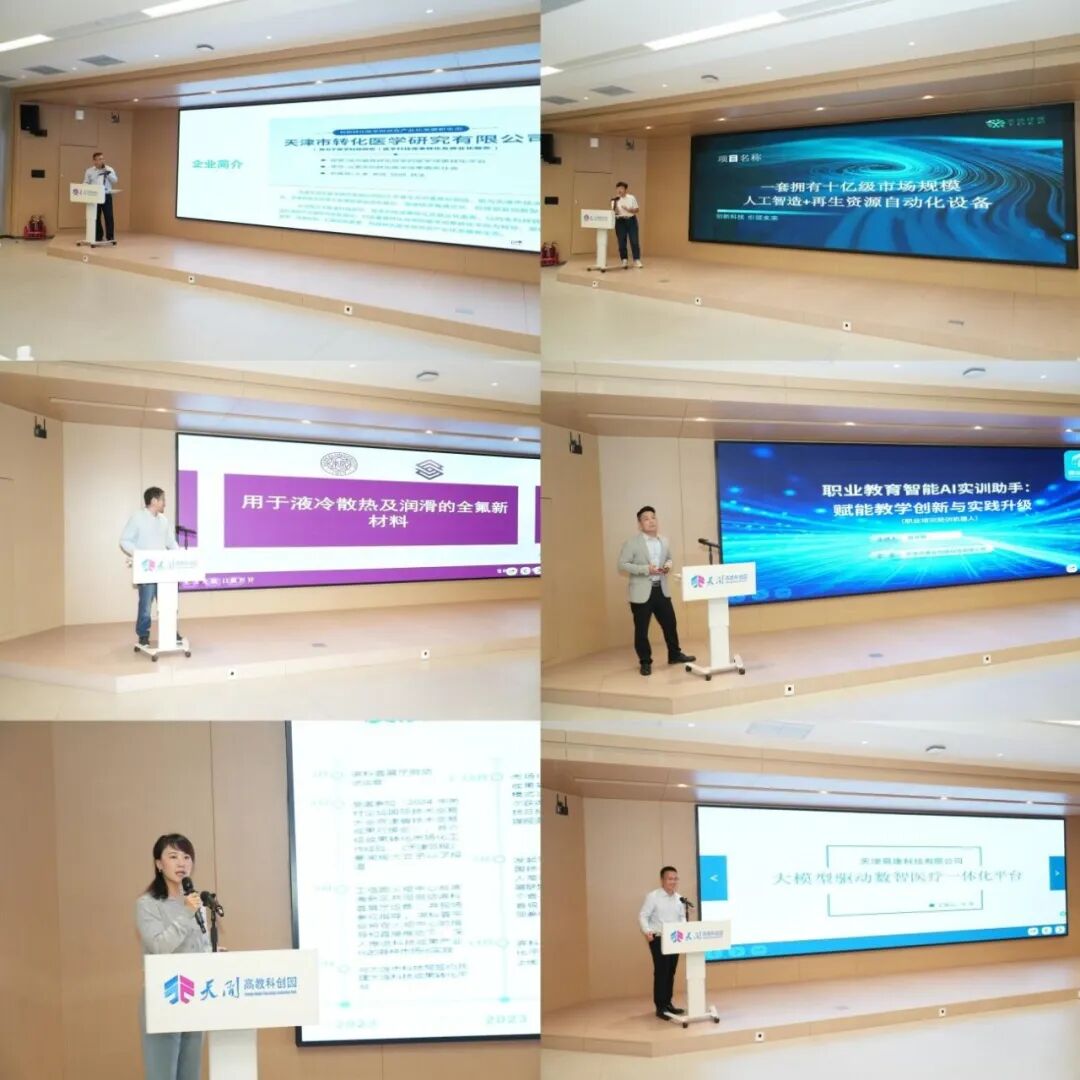 参访结束后,路演环节正式拉开帷幕。本次共呈现6个优质项目,其中南开大学商学院2025级EMBA学员主导的2个项目,凭借前沿的技术理念与清晰的商业逻辑,成为现场焦点。两个项目聚焦“AI+”和新材料,面向人工智能时代的未来产业布局。从赵华敏学员的“职业教育智能AI实训助手”,到柴博瀚学员的“适配液冷散热需求的全氟新材料”,每个项目都承载着学员对行业痛点的深刻洞察与创新突破的决心,而项目特点也与天开园产业方向高度契合。