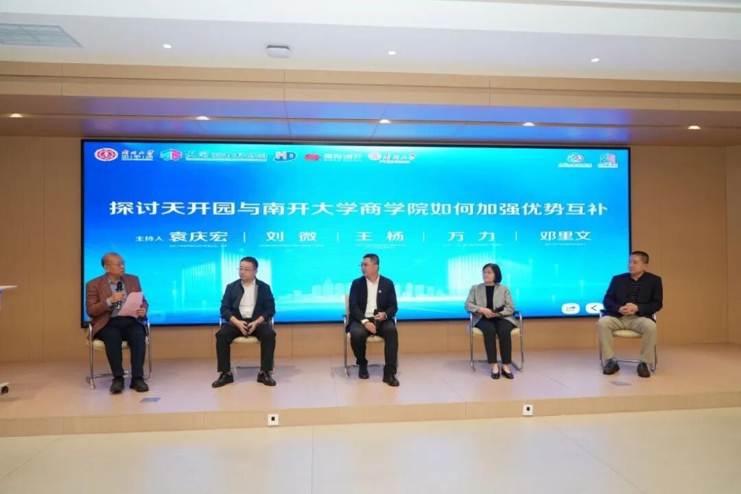 两场高规格圆桌对话则为EMBA学员搭建深度对话的桥梁。在“南开大学商学院与天开园如何加强优势互补”圆桌对话上,EMBA教育主任袁庆宏教授带领嘉宾围绕资源对接、人才共育展开探讨,明确“学员项目优先对接园区政策、园区岗位定向输送南开人才”的合作方向。在“初创企业如何借助校友网络加速融资”圆桌对话上,EMBA教育主任崔连广教授带领6个路演项目代表,直面融资痛点,与天开发展集团、津投城开等企业负责人共商破局之道,现场达成初步合作意向。