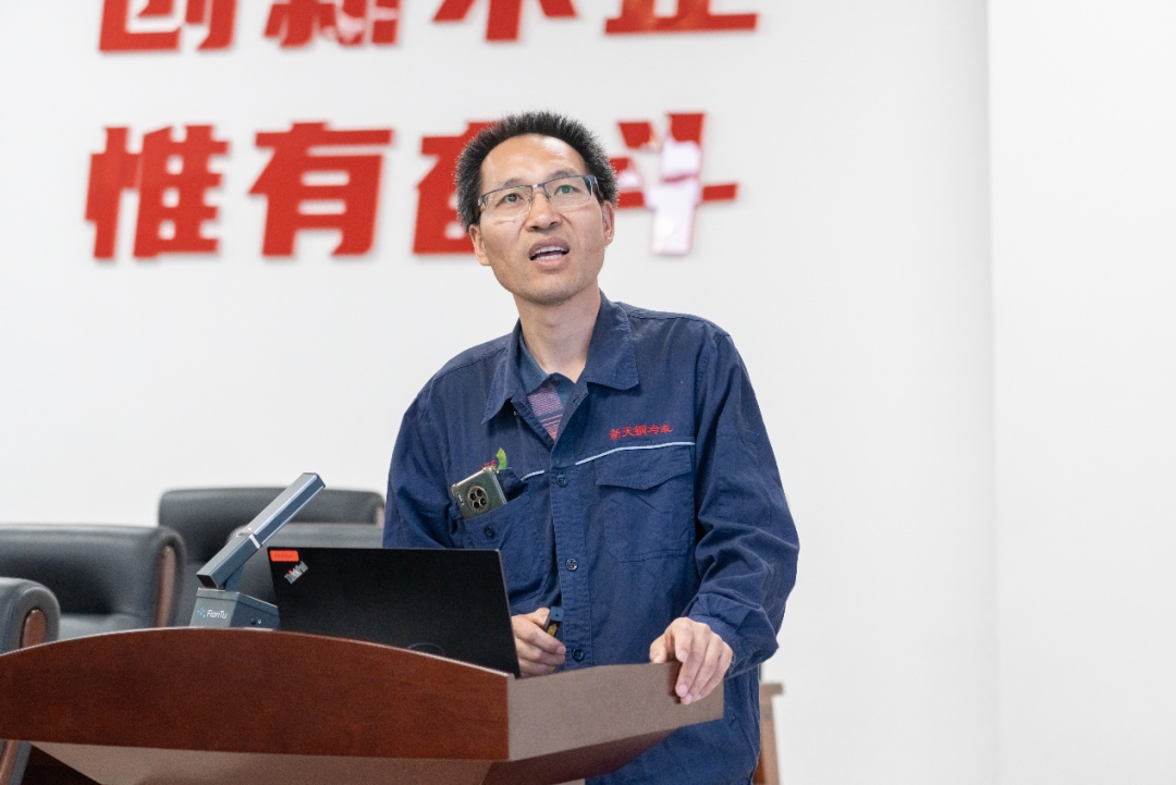 5月24日上午,在课题研讨会上,新天钢冷轧薄板公司精益智能部部长孙石以“智能制造”为核心进行了深入的介绍,详细阐述了企业数智化建设的具体实践与未来愿景。孙部长的分享从公司概况、建设历程、平台建设概况以及后期规划四个方面展开,全面展示了钢铁行业面临的普遍挑战,并结合新天钢的实际案例,探讨了智能制造在绿色转型与管理创新中所发挥的关键作用。孙部长指出,新天钢冷轧薄板公司结合企业智能化发展战略,坚持一个理念(创新引领风险管控)、构建三大转型(产品高端化、管控智能化、厂区绿色化)、实现三大目标(推动组织变革和流程再造、打造钢铁工业互联网AI平台、提升企业生态核心竞争力),持续探讨智能制造在新天钢绿色转型与管理创新过程中发挥的重要作用。