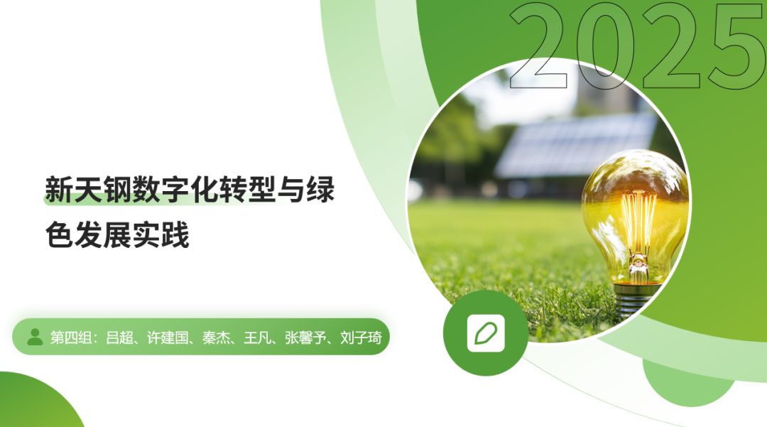第四组(成员:吕超、秦洁、刘子琦、王凡、许建国、张馨予)以“新天钢数字化转型与绿色发展实践”为题,从行业标杆对比角度切入,针对数字化流程实施案例展开详细分析,深入剖析了企业在推进数字化转型与绿色融合发展过程中的关键举措与成效。首先,在生产流程智能化改造方面,小组成员结合新天钢的具体实践,重点探讨了智能排产系统和能源管理系统的应用情况。他们指出,传统钢铁企业在排产过程中存在计划制定依赖经验、响应速度慢、资源利用率低等问题,而新天钢通过引入基于人工智能算法的智能排产系统,实现了订单、库存、设备状态等多维度数据的动态协同,大幅提升了生产调度的科学性与灵活性,缩短了交货周期,降低了非计划停机时间。其次,在行业对标分析中,小组选取了国内外多家在智能制造与绿色低碳领域具有代表性的钢铁企业作为参照对象,从数字化投入强度、技术应用水平、数字化转型路径等多个维度进行横向比较。通过对比发现,新天钢在部分关键领域的数字化能力已接近或达到行业先进水平。