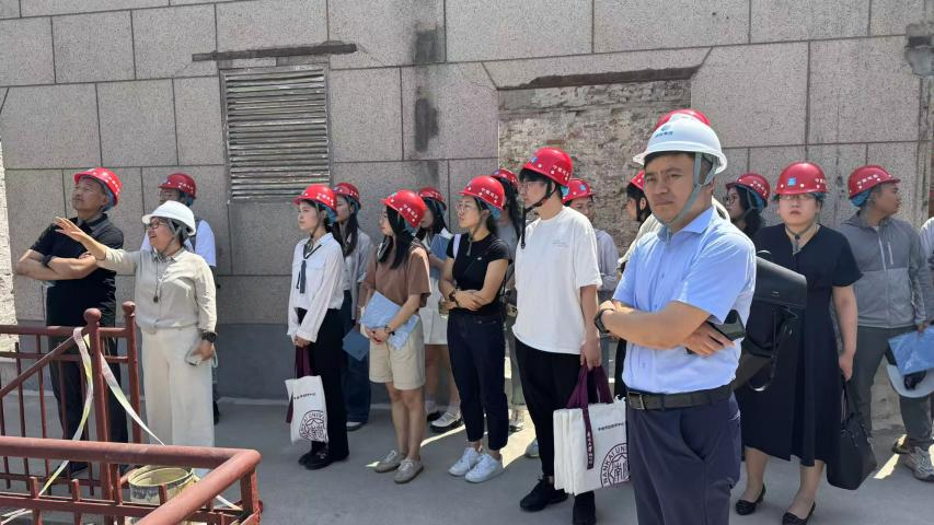 在进入施工现场后,南开调研师生团队在津融集团管理人员的带领下参观了劝业场大楼的修缮施工情况。在讲解人员的介绍中,团队对这座诞生百年的法式折衷主义建筑及其背后所承载的历史记忆有了更为具象的了解。