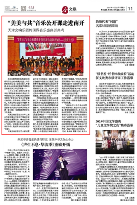 今晚报:“美美与共”音乐公开课走进南开 天津交响乐团跨国界音乐盛典引共鸣